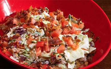 Tater tots, ranch, bacon, shredded iceberg, diced tomatoes & scallions