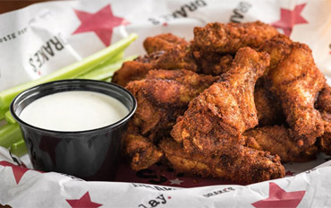 Bone-in sriracha dry rub wings; celery & choice of ranch or blue cheese 17.99