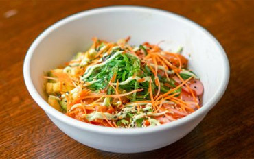 Choice of tuna or salmon; sushi rice, avocado, pickled radish & carrot, jalapeño, wasabi mayo, sriracha, wakame, citrus ponzu sauce, sesame seeds 14.49