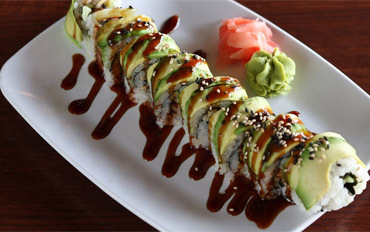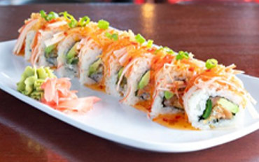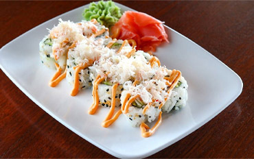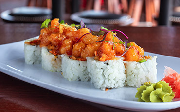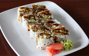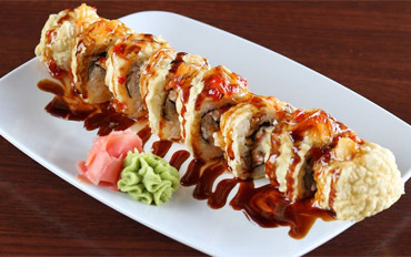 Tempura shrimp, avocado, seaweed, sushi rice, sesame seeds; topped with sushi sauce 10.49